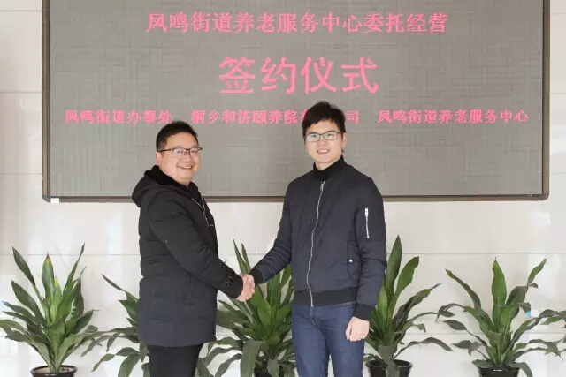 克日,,,,,,子公司桐乡和济颐养院与桐乡市凤鸣街道养老服务中心正式签约啦!凤鸣街道养老服务中心作为桐乡和济颐养院首个托管谋划项目,,,,,,未来将导入和济颐养院的管理系统以及规范的养老服务流程,,,,,,为凤鸣街道养老事业提高一个新台阶,,,,,,同时也让更多的桐乡老人可以享受到和济颐养院高品质的养老服务。。。。。