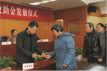 仪式上,,,,,,,,市慈善总会会长徐八斤转达了2012年度全市募捐救助和2013春节前的救助安排情形。。。。。我公司在此次救助金发放仪式上发放了6万元救助金,,,,,,,,资助了12户贫困家庭,,,,,,,,公司向导体现慈善事业是我们企业的责任,,,,,,,,也是义务。。。。。我们企业的生长壮大离不开社会各界的资助和支持,,,,,,,,现在我们希望尽我们所能资助更多需要资助的人。。。。。